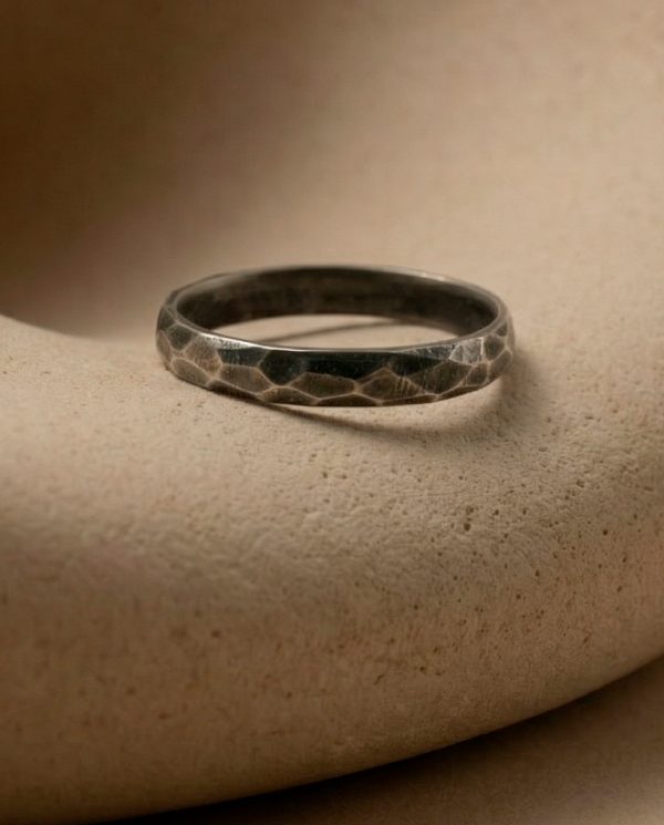 Alianza de plata oxidada y facetada a lima.