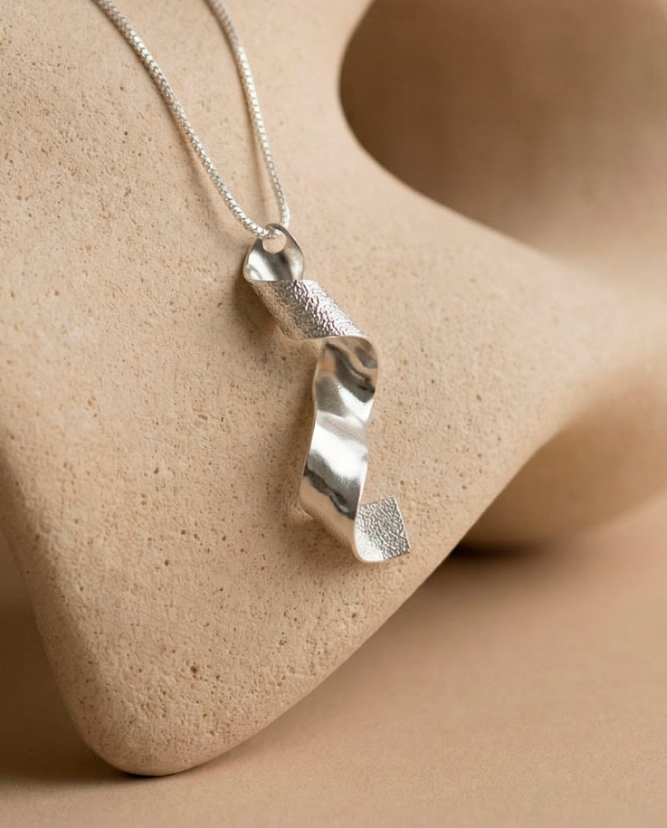 Metal trabajado a mano, cintas de plata que vuelan.