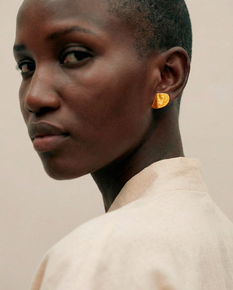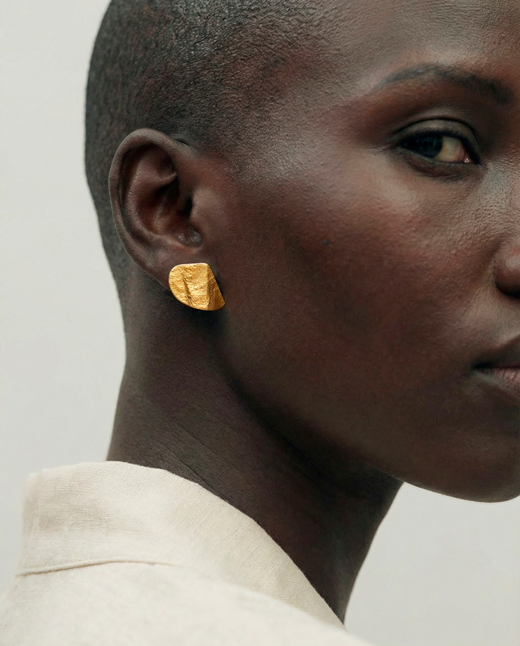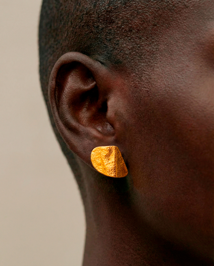 - Pendientes de plata de ley bañada en oro, plegada y texturizada al fuego. La textura puede variar, están elaborados a mano siendo cada unidad irrepetible. Baño de 2 micras.